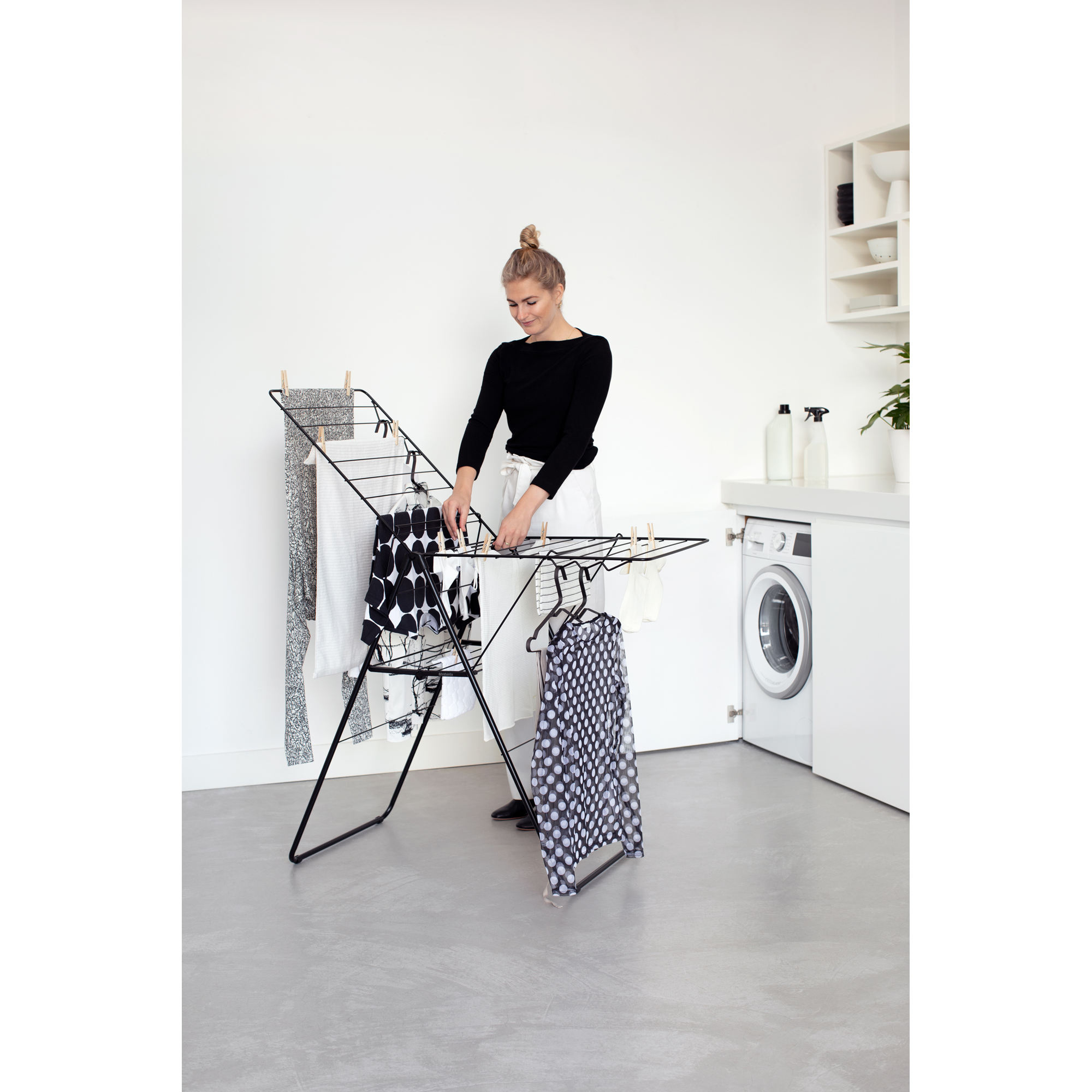 با بند رخت 20 متری مشکی مات برابانتیا در انرژی و زمان صرفه-جویی کرده و لباس هایتان را بصورت طبیعی خشک کنید. با 20 متر فضای قابل تنظیم برای آویزان کردن لباس ها و یک فضای مخصوص برای آویزان کردن 6 چوب رختی، شما می توانید حتی لباس های حساس خود را در هر نقطه از خانه که می خواهید خشک کنید. بند رخت 20 متری مشکی مات برابانتیا انعطاف پذیری بالایی داشته و بسیار جمع و جور می-باشد. شما می توانید پس از استفاده براحتی آن را تا کرده و جمع کنید.