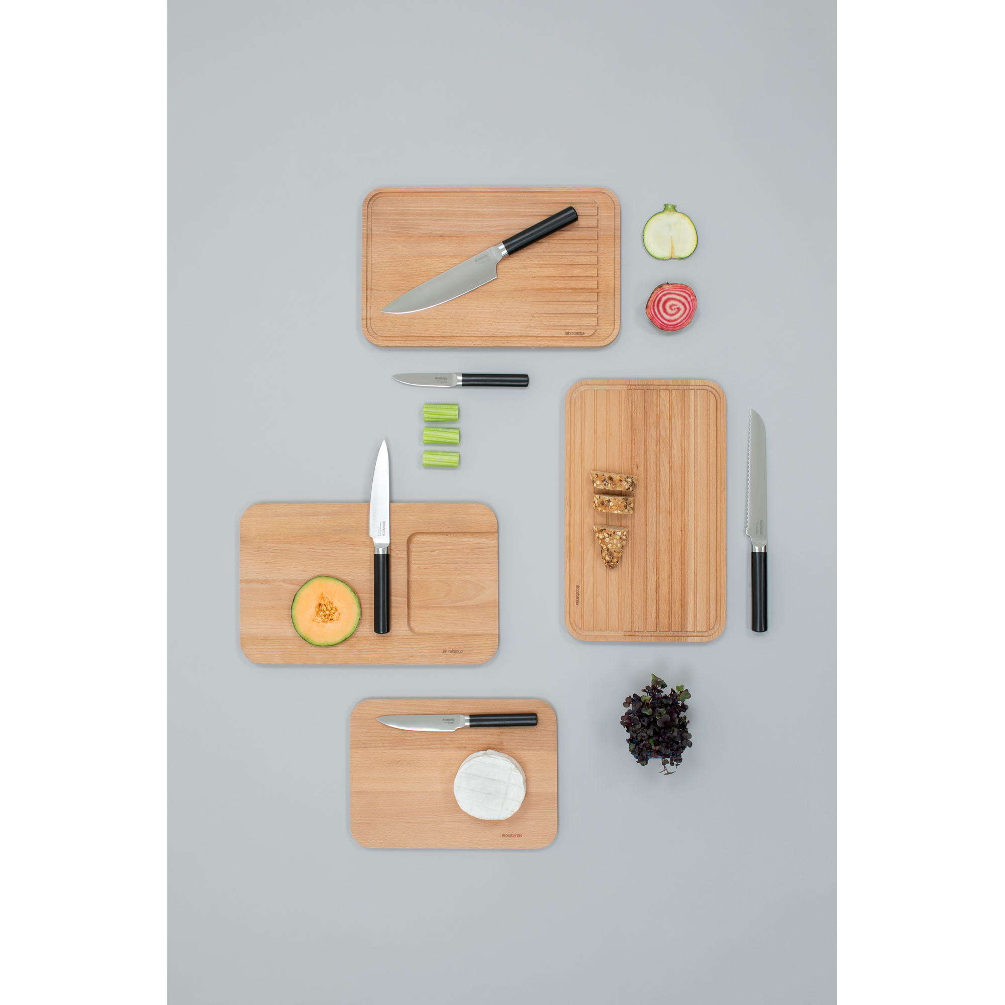 با تخته برش نان برابانتیا دیگر نیازی نیست نگران ریختن خرده-های نان برروی پیشخوان آشپزخانه باشید. این تخته کاربردی از چوب راش ساخته شده که علاوه بر ظاهری زیبا، از دوام بالایی نیز برخوردار است. این تخته برش نان برابانتیا همچنین دارای شیارهای است که از ریختن خرده های نان جلوگیری می کند. پس از برش دادن نان شما می-توانید تخته را برگردانده و از روی صاف آن بعنوان سینی سرو استفاده کنید.
