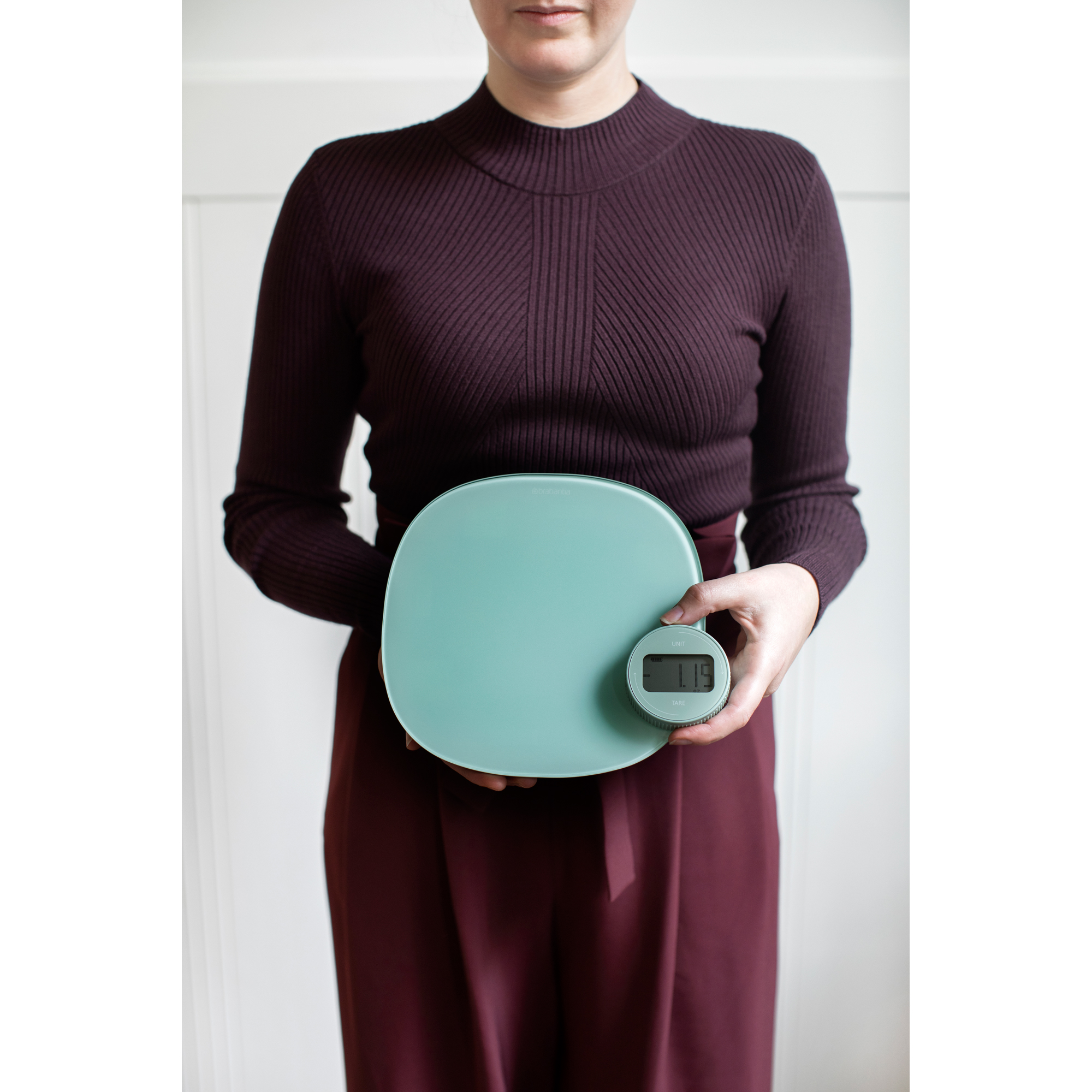 آیا بدنبال ترازویی هستید که باطری آن هیچگاه تمام نشود؟ ترازوی آشپزخانه پلاس سبز برابانتیا، هر چیزی را از 5 گرم تا 5 کیلوگرم را اندازه می گیرد. این ترازوی هوشمند مجهز به یک دینام می باشد که با چرخاندن پیچ، شارژ شده و دیگر نیازی به باطری ندارد. ترازوی آشپزخانه پلاس سبز برابانتیا به محیط زیست آسیبی نمی رساند و به آسانی نیز تمیز می شود.