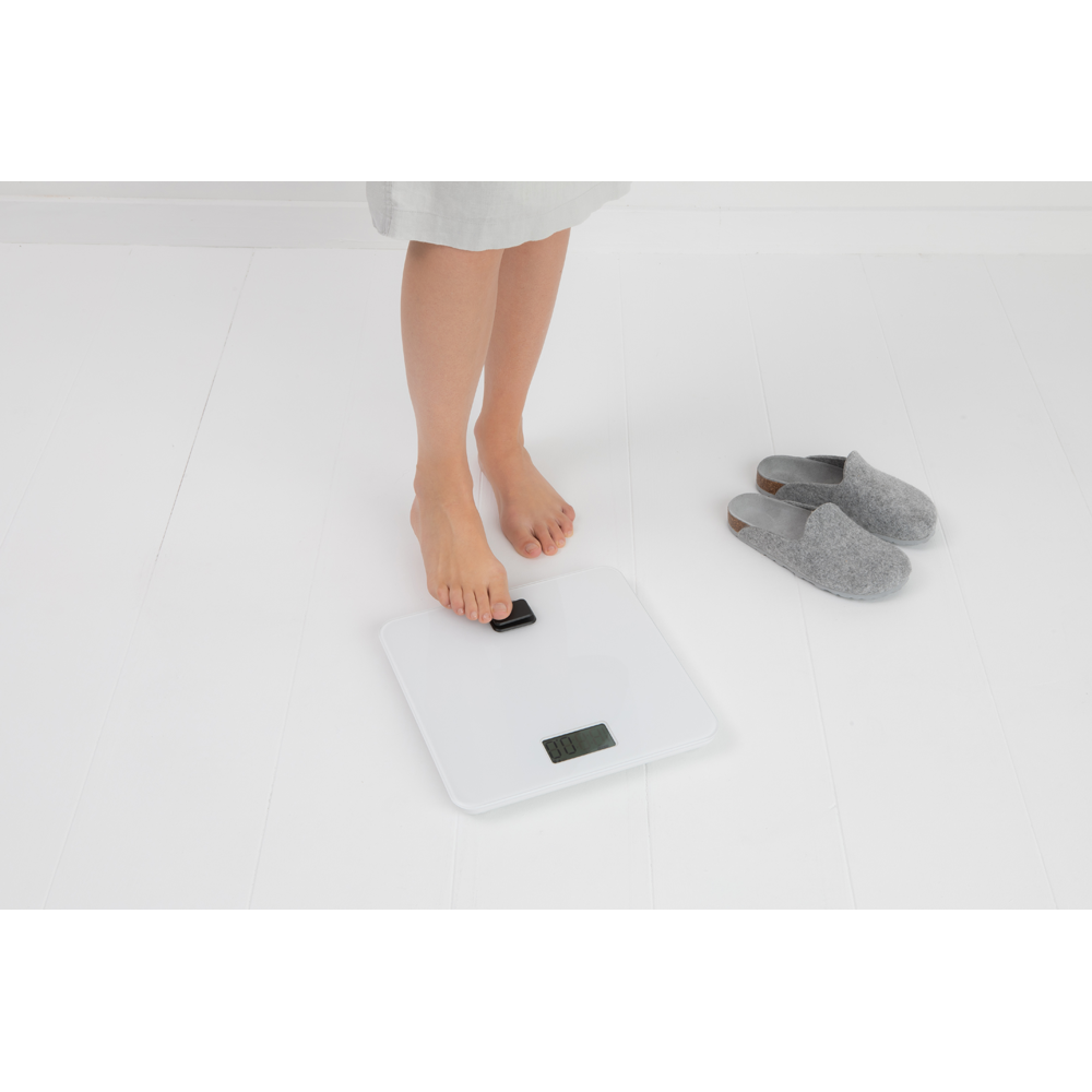 با این ترازوی دیجیتال حمام بدون باطری سفید برابانتیا به حفظ کره زمین کمک کنید. این ترازو دارای ظاهری براق و با سطح شیشه ای فشرده است و می تواند تا 150 کیلوگرم را تحمل کند. فقط با فشار دادن دکمه با پای خود نیرو تولید کنید و روی ترازو قدم بگذارید.