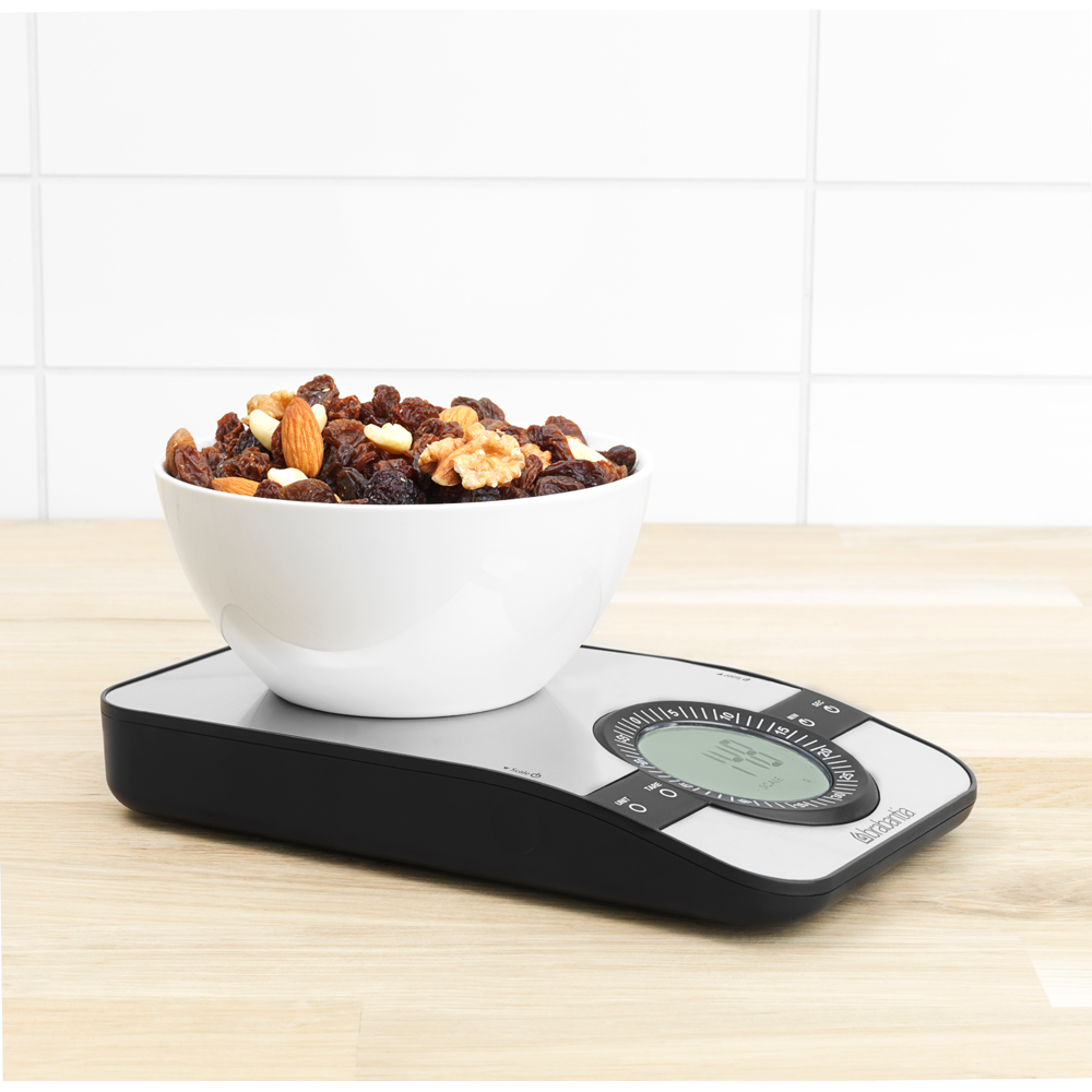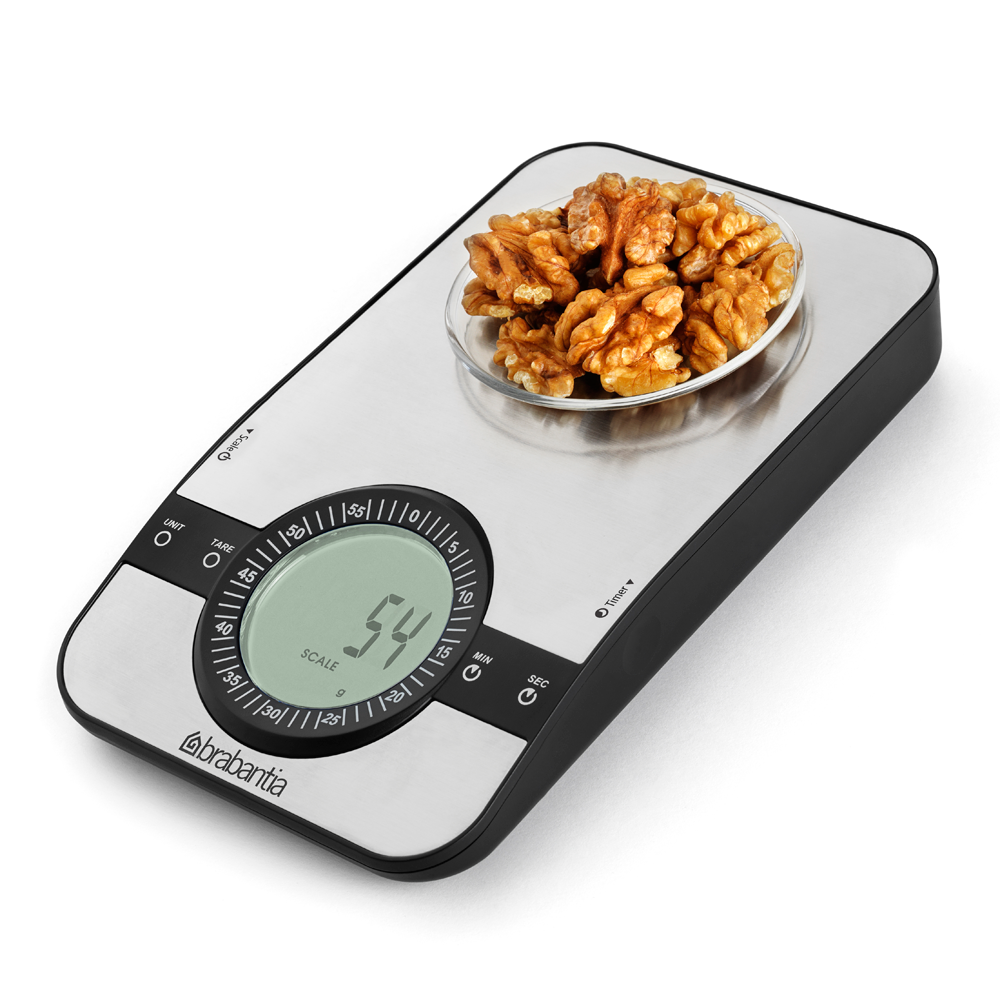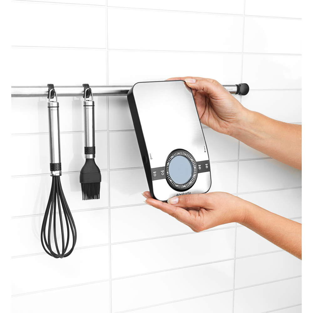 آیا دوست دارید همزمان چند کار را با هم انجام دهید؟ پس نوبت به ترازوی مستطیل دیجیتال آشپزخانه استیل مات برابانتیا می رسد که زمان و وزن را اندازه گیری می کند. این وسیله کمکی آشپزخانه قوی دارای یک صفحه نمایش بزرگ با نور پس زمینه، خاموش شدن خودکار و وزن همه چیز از یک گرم تا 5 کیلوگرم را محاسبه می کند. کار وزن کردن تمام شد؟ فقط کافی است سطح شیشه را پاک کنید و ترازو را درجایی مناسب از حلقه آن آویزان کنید.