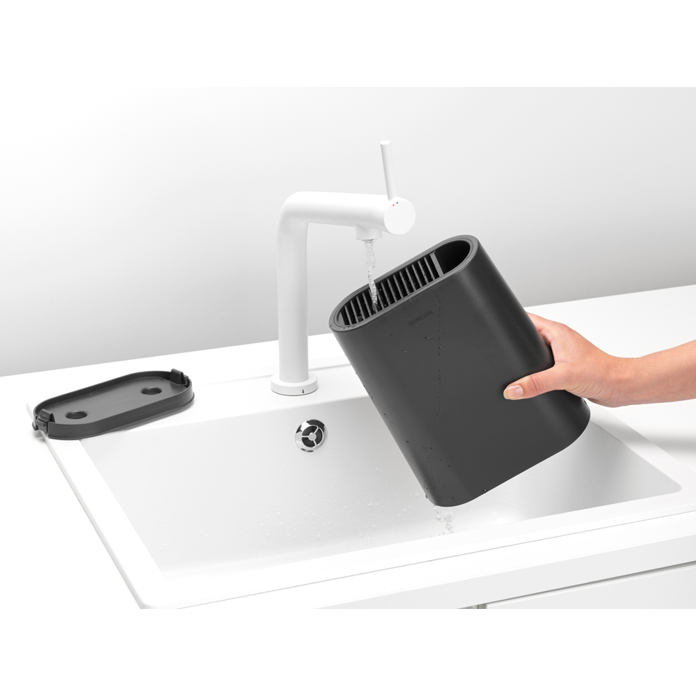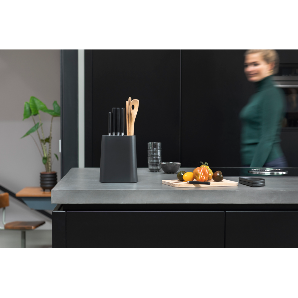 با این بلوک چاقو و جای ابزار آشپزخانه برابانتیا، شلوغی و پراکندگی وسایل آشپزخانه خود را کاهش دهید. این بلوک با رنگ خاکستری تیره و ظاهرا شیک خود، همه ابزار آشپزخانه مورد علاقه شما را در کنار هم نگه می دارد.