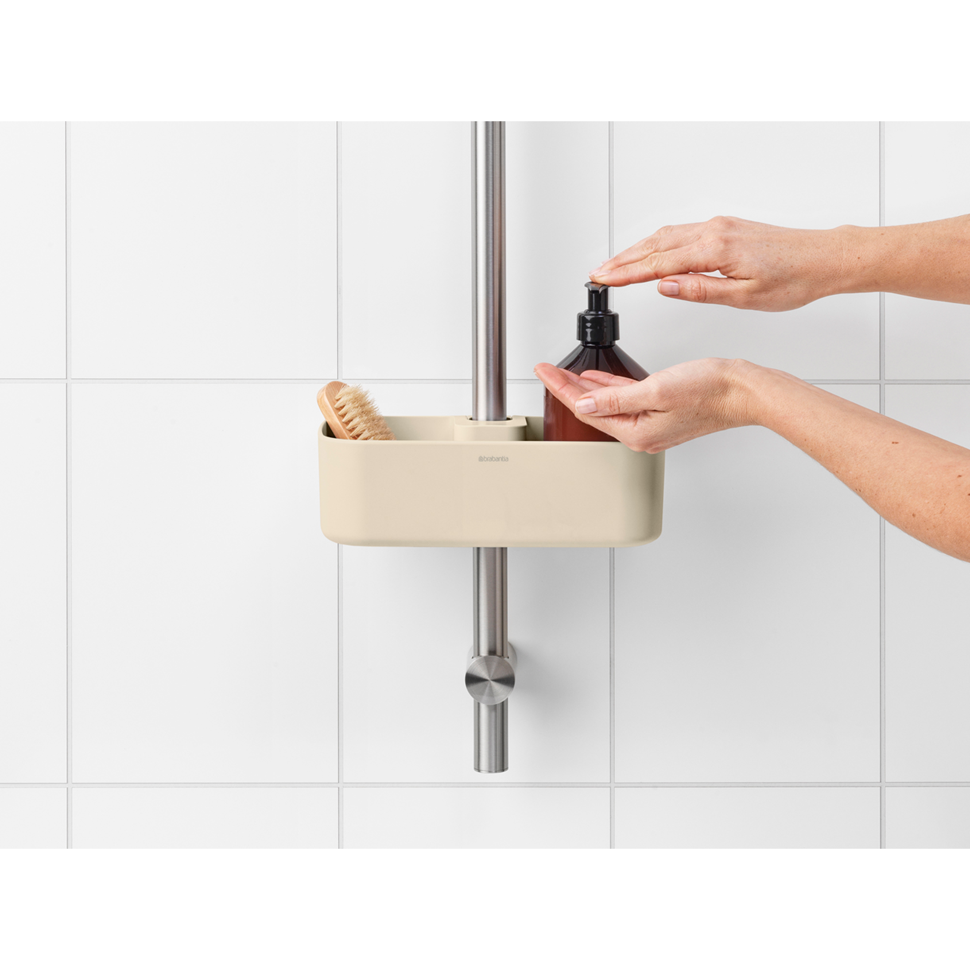 فرقی نمی کند شامپو، شامپو بدن، محصولات مراقبت پوست و یا تیغ باشد! با جا شامپو حمام بژ برابانتیا، تمامی محصولات حمام شما مرتب و منظم خواهند بود. شما می توانید براحتی این ظرف نگهدارنده را برروی میله دوش و در ارتفاعی که برایتان مناسب است پیچ کنید. این جا شامپو حمام بژ برابانتیا یک راه حل کاربردی ست برای اینکه حمام خود را مرتب و زیبا نگه دارید.