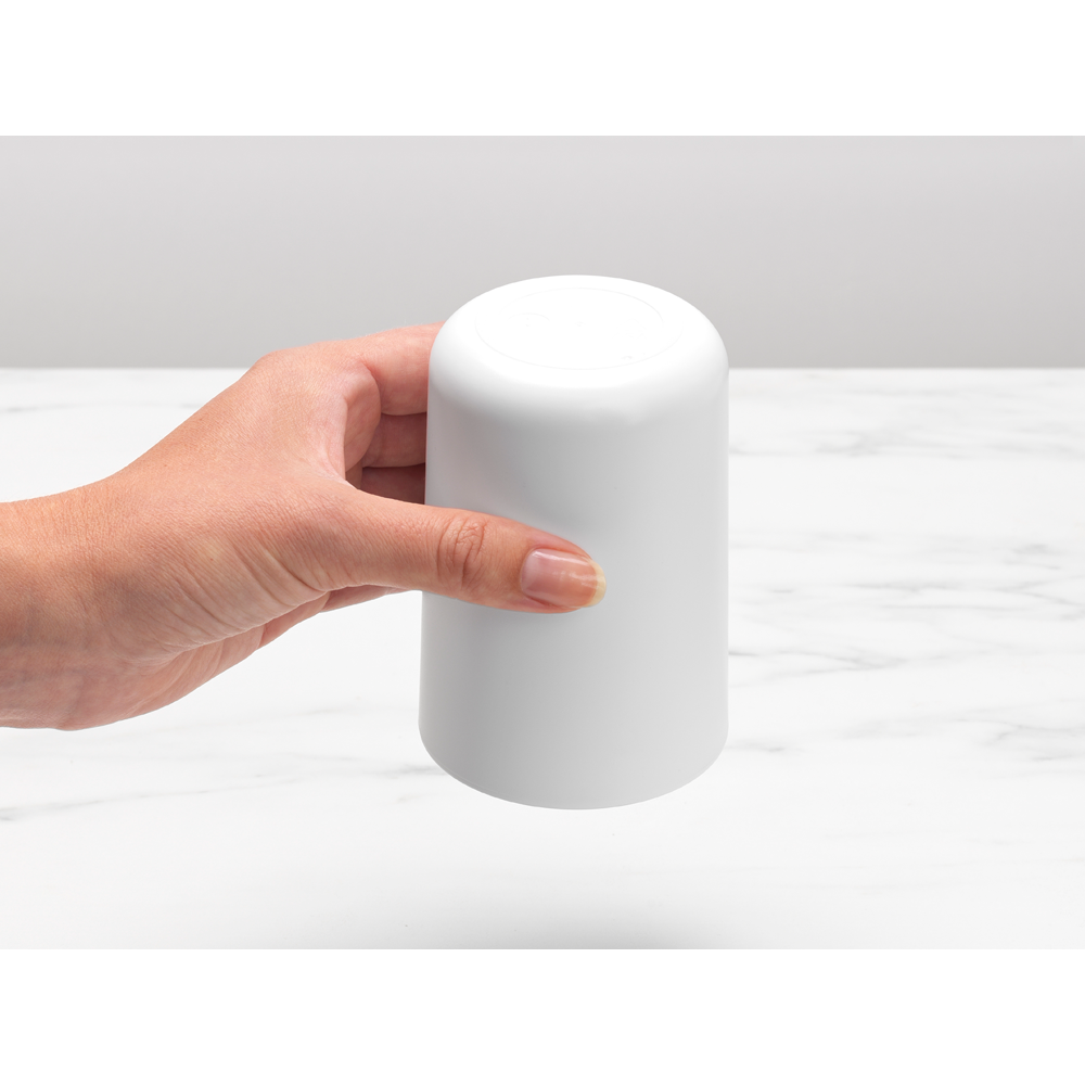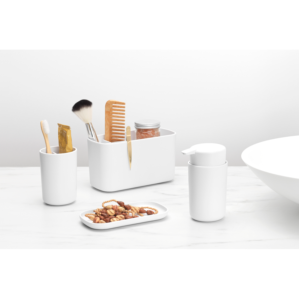 پیدا کردن جا مسواکی هماهنگ با حمام شیک شما کار راحتی نیست، اما این جا مسواکی سفید برابانتیا دقیقا برای این کار ساخته شده است! این جا مسواکی، خمیر دندان و مسواک شما را در کنار هم، به شکل صاف و ایستاده، خشک و تمیز نگه می دارد. برای مسواک های برقی هم معجزه می کند! حقیفتا که این جا مسواکی برای لبخند طراحی شده است.