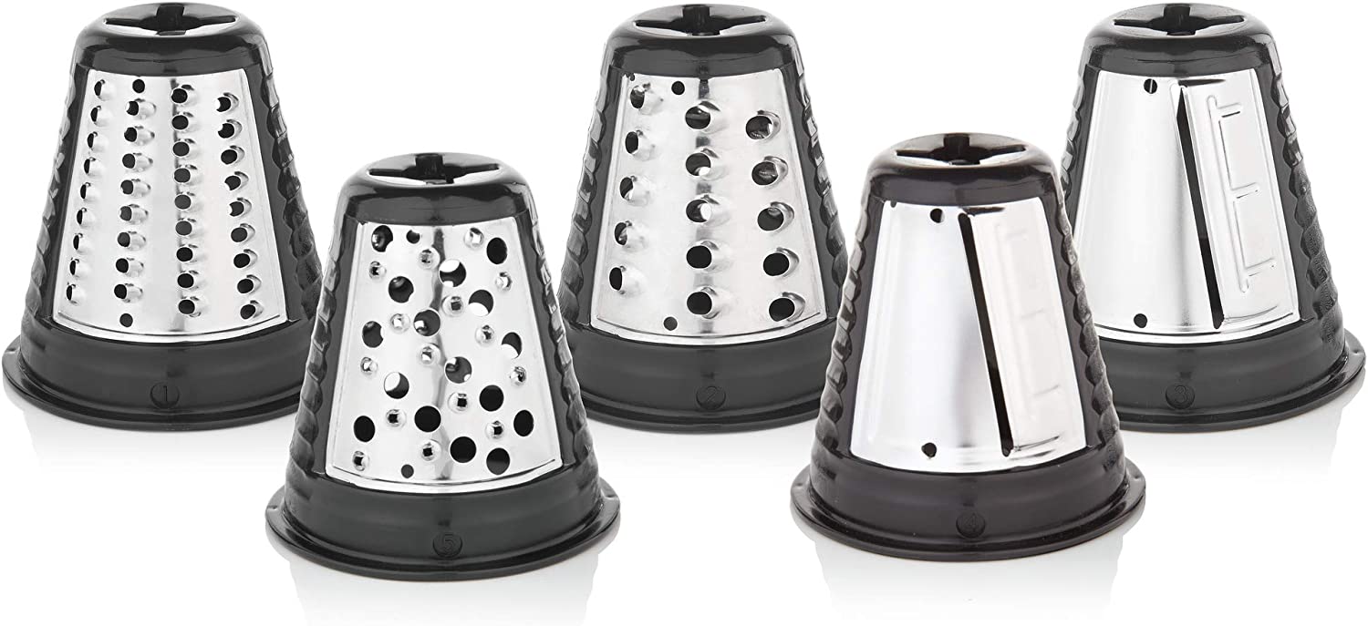 سالاد ساز زیبا و کاربردی KITCHENminis وی ام اف از جنس استیل انحصاری Cromargan® ساخته شده است که دارای کیفیت و دوام بالایی است. رنده این دستگاه دارای 5 دیسک مختلف است که به کمک آنها می توانید در چشم به هم زدنی انواع میوه و سبزیجات و حتی پنیر و مغزها را تکه تکه، خلال، رنده و ورقه ورقه کنید. این سالاد ساز همچنین دارای یک ظرف سالاد است که از جنس پلاستیک باکیفیت ساخته شده و فاقد مواد مضر BPA می باشد. شما می توانید بدون هیچ نگرانی مواد غذایی خرد شده را مستقیما داخل این ظرف بریزید. برروی درب ظرف نیز یک محفظه برای ریختن سس تعبیه شده است تا شما بتوانید سالاد و سس دلخواه تان را هر جا که می روید با خود به همراه داشته باشید. استفاده از این دستگاه بسیار آسان است و شما می توانید با توجه به نیازتان سرعت آن را تنظیم کنید. قطعات این سالادساز نیز براحتی از هم جدا شده و قابل شستشو در ماشین ظرفشویی می باشند.
