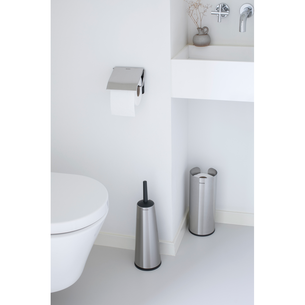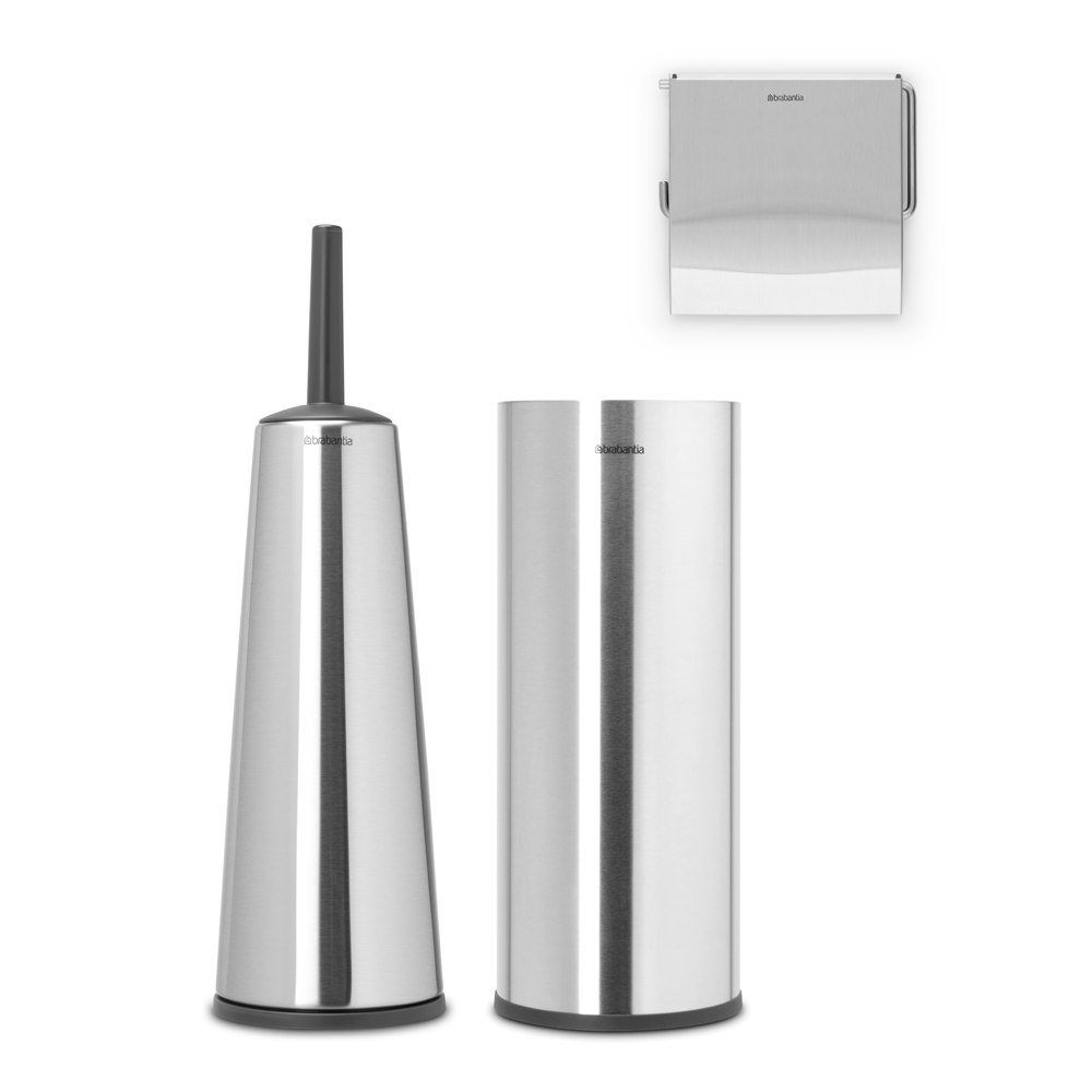 ست سه تکه سرویس بهداشتی استیل مات برابانتیا از مجموعه ReNew اینجاست تا به سرویس بهداشتی شما رنگ و رویی تازه دهد. این ست دارای برس و نگهدارنده توالت است که توالت شما را تمیز و بهداشتی نگه می دارد، نگهدارنده رول توالت با ظاهری مینیمال که از رول توالت در برابر گرد و غبار محافظت می کند و همچنین کشیدن دستمال از روی رول را آسان می کند، و رول توالت فرنگی به طور مخفی تا سه رول را نگه می دارد. هر آنچه برای شیک و زیباتر کردن توالت خود نیاز دارید در این مجموعه وجود دارد.