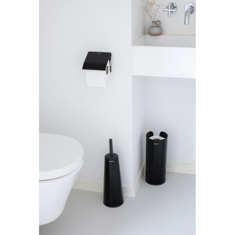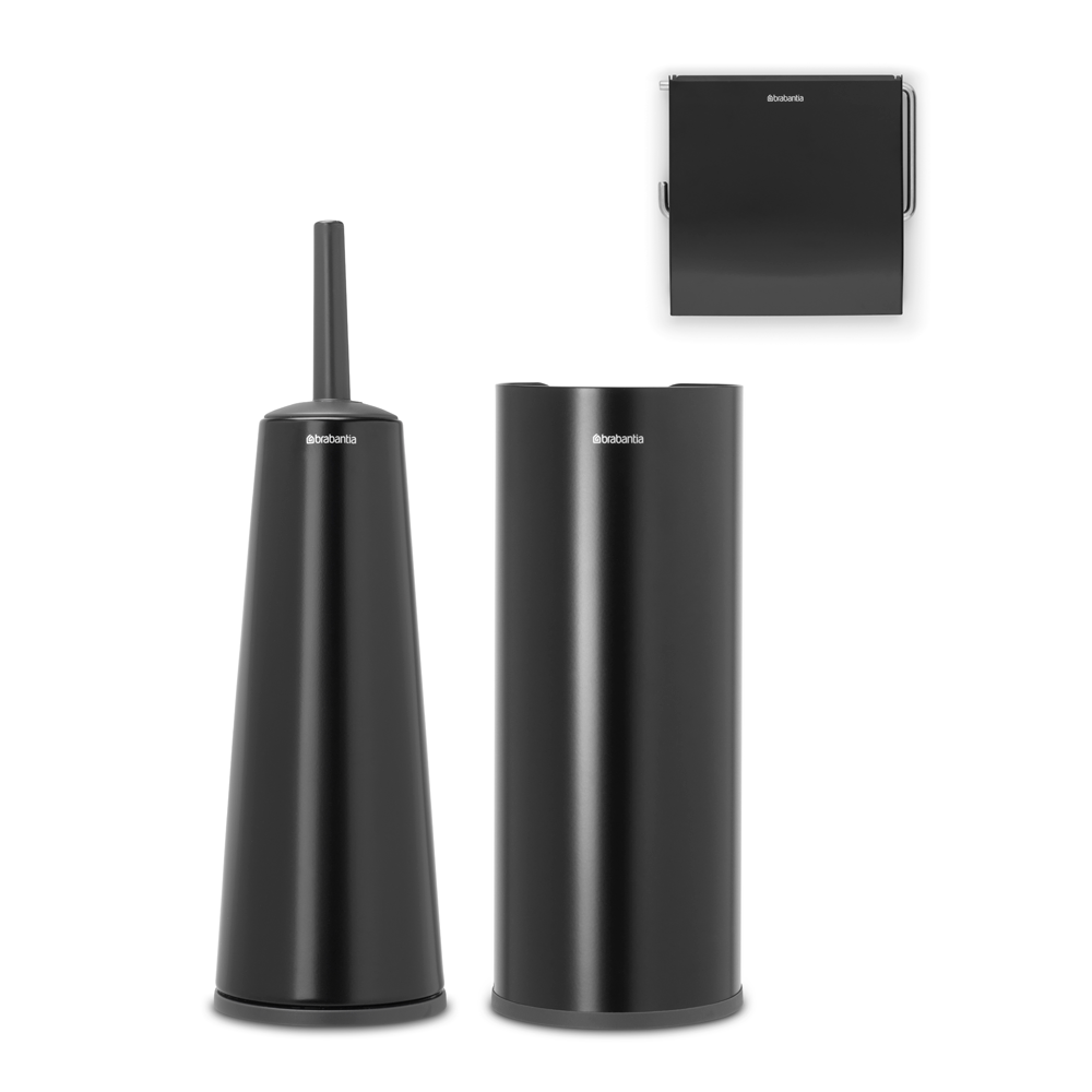 ست سه تکه سرویس بهداشتی مشکی مات برابانتیا از مجموعه ReNew اینجاست تا به سرویس بهداشتی شما رنگ و رویی تازه دهد. این ست دارای برس و نگهدارنده توالت است که توالت شما را تمیز و بهداشتی نگه می دارد، نگهدارنده رول توالت با ظاهری مینیمال که از رول توالت در برابر گرد و غبار محافظت می کند و همچنین کشیدن دستمال از روی رول را آسان می کند، و رول توالت فرنگی به طور مخفی تا سه رول را نگه می دارد. هر آنچه برای شیک و زیباتر کردن توالت خود نیاز دارید در این مجموعه وجود دارد.