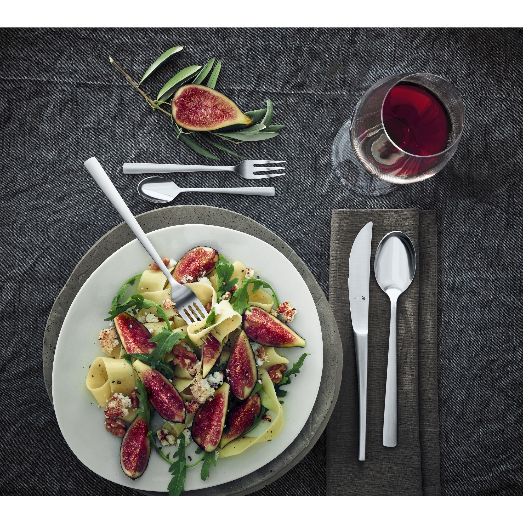 12 x table spoon ,12 x table fork ,12 x table knife ,12 x teaspoon ,12 x cake fork ,1 x salad server ,2-piece ,1 x serving spoon ,1 x soup ladle ,1 x serving fork ,1 x cake server |
