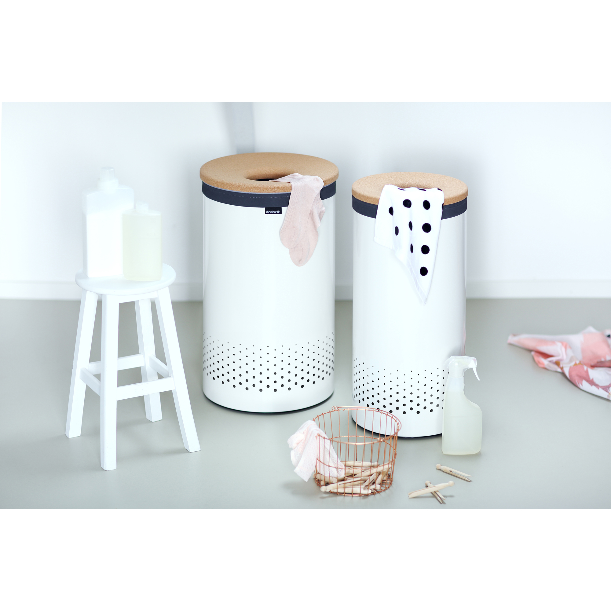 با سطل رخت 60 لیتر مدل کورد لید سفید برابانتیا شستن لباس ها آسان تر می شود. به کمک این سطل 60 لیتری شما می توانید همه لباس های کثیف خود را یکجا جمع کنید تا دیگر جلوی چشم نباشند. همچنین برروی درپوش این سطل بزرگ سوراخی قرار دارد تا بدون نیاز به باز کردن درپوش، لباس های کثیف خود را داخل آن بیندازید. داخل این سطل رخت 60 لیتر مدل کورد لید سفید برابانتیا یک کیسه رختی از جنس پنبه قرار دارد که شما می توانید براحتی آن را از سطل جدا کنید. این سطل رخت ضدزنگ بوده و دارای سوراخ هایی می باشد که باعث جریان هوا شده و مانع بو گرفتن آن می شود. کف سطل نیز یک حلقه محافظ قرار دارد که مانع آسیب رسیدن به سطوح می شود.