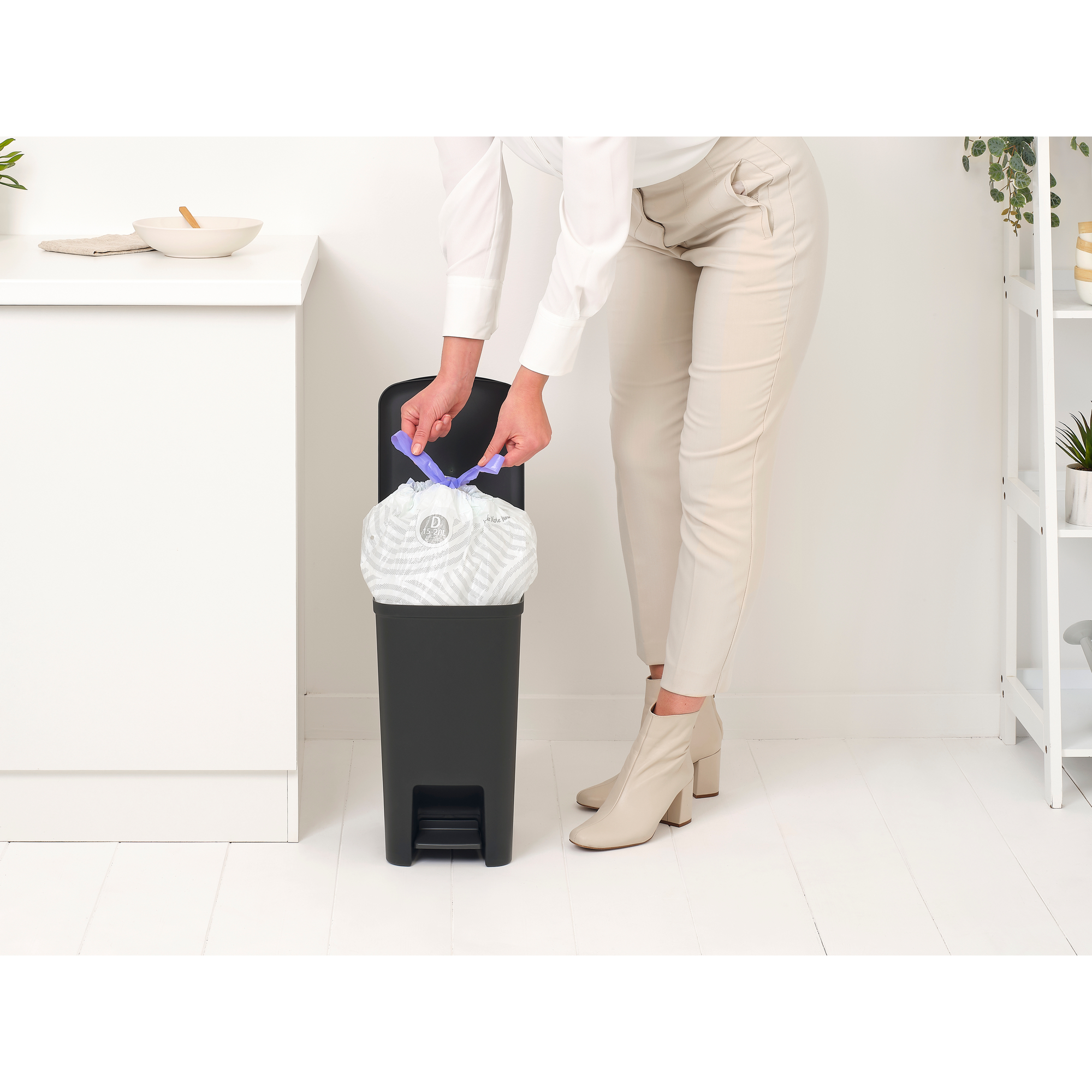 - بدون روکش زشت – کیسههای سطل Brabantia PerfectFit با نوار بند (کد D).