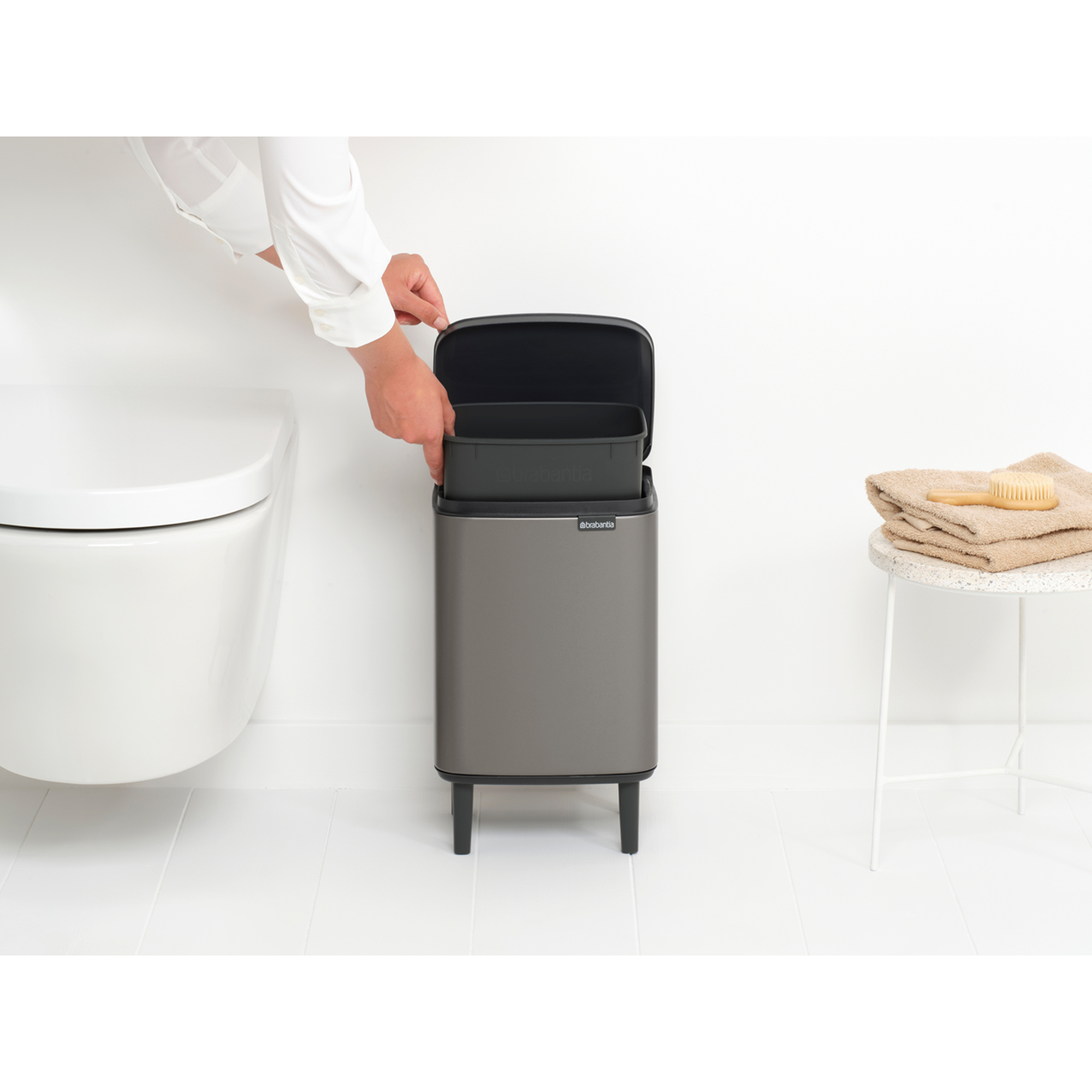 سطل زباله بو تاچ بین بلند 7 لیتر پلاتینیوم برابانتیا نه خیلی بزرگ است و نه خیلی کوچک، درست اندازه ای است که به آن نیاز دارید. این سطل 7 لیتری زیبا و کاربردی جای کمی را می گیرد و براحتی در هر گوشه و کناری جا می شود. درب سطل زباله بو تاچ بین بلند 7 لیتر پلاتینیوم برابانتیا نیز هم از راست و چپ و هم از جلو باز می شود و برای دورانداختن زباله دیگر نیازی نیست خود را بچرخانید. شما می توانید براحتی آن را در هرکجای منزل که دوست دارید قرار دهید.