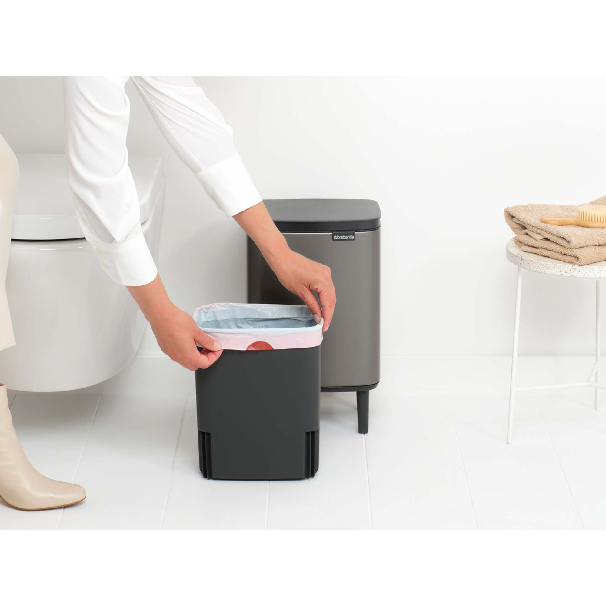 - مطابقت کامل – دارای بسته نمونه کیسه زباله Brabantia PerfectFit (کد B).