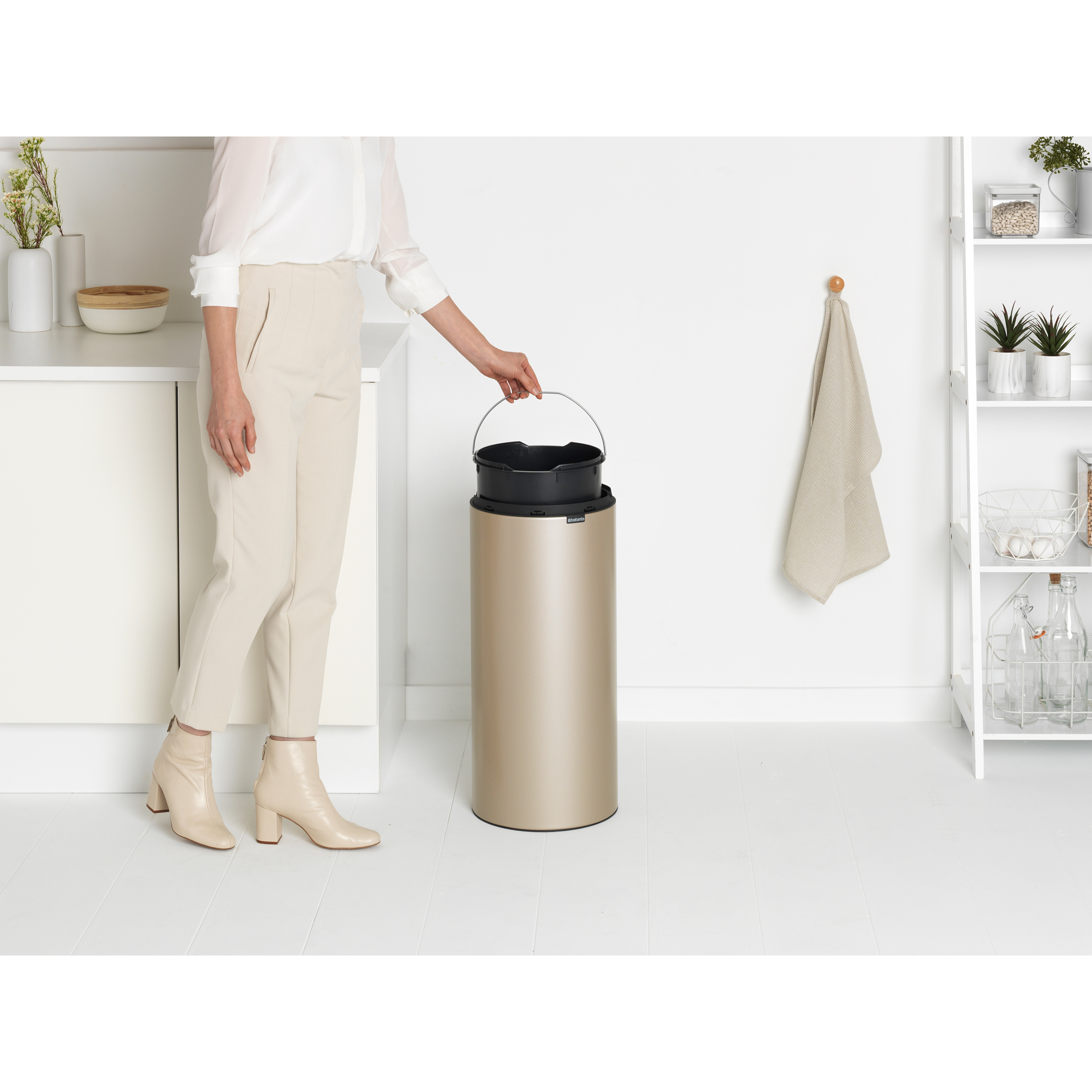 با سطل زباله تاچ بین نیو 30 لیتر طلایی برابانتیا مرتب کردن خانه خود را یک مرحله فراتر ببرید. درب این سطل 30 لیتری با یک اشاره دست باز می شود و تمیز کردن آن بسیار آسان است. شما می توانید براحتی کیسه زیاله را تعویض کرده و سطل را نیز تمیز کنید. سطل زباله تاچ بین نیو 30 لیتر طلایی برابانتیا لمسی بوده و با طراحی استوانه ای دارای یک لبه محافظ می باشد تا به کف خانه شما آسیبی وارد نشود. شما می-توانید از این سطل زباله محکم و مقاوم بدون هیچ مشکلی برای سال های زیاد استفاده کنید.