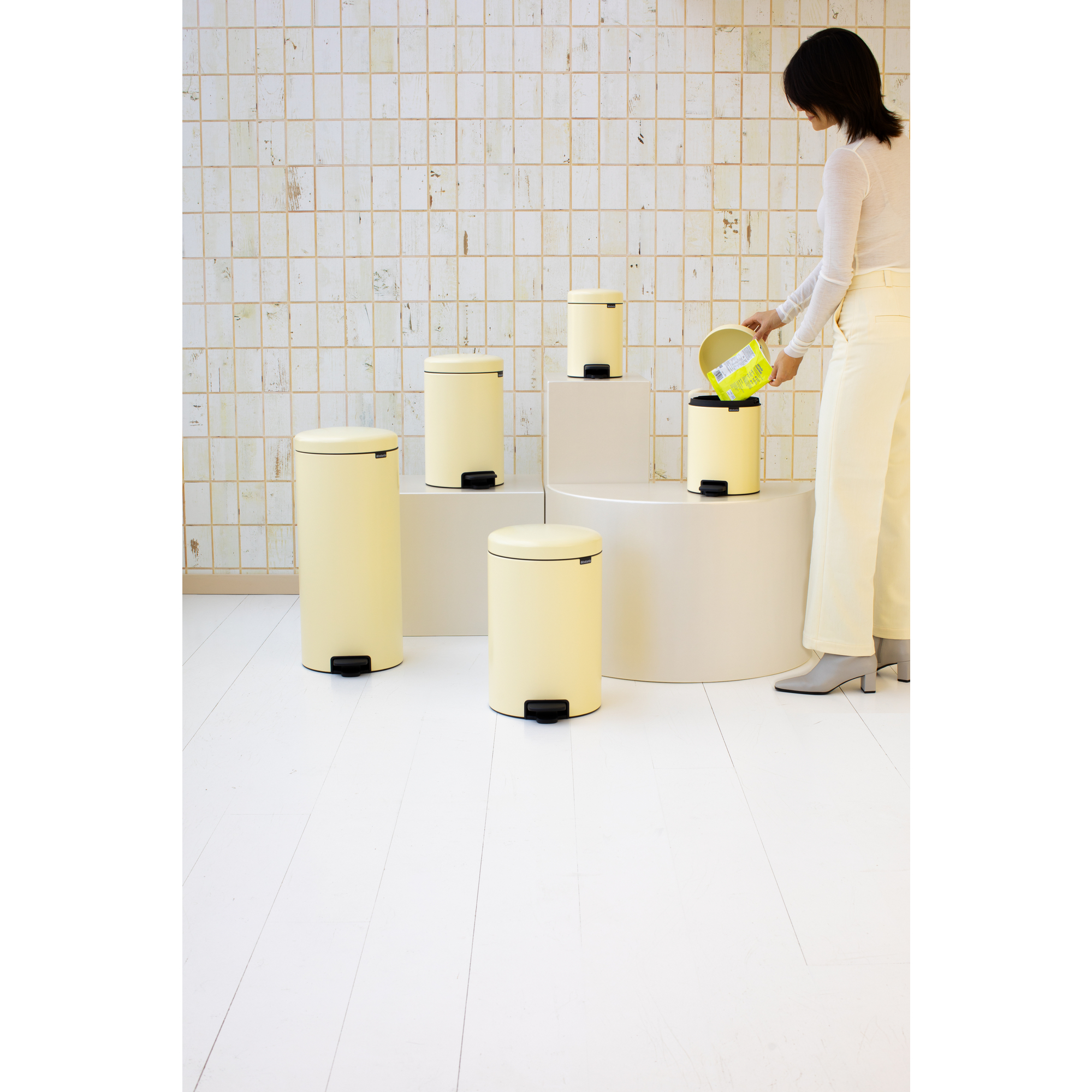 سطل زباله نیو آیکن پدالی 5 لیتر زرد ملایم برابانتیا